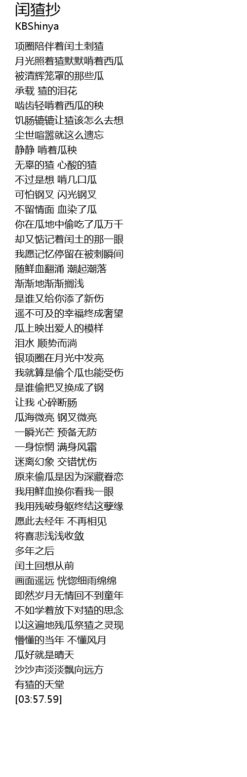 | [00:37.76] | 月光照着猹默默啃着西瓜 |