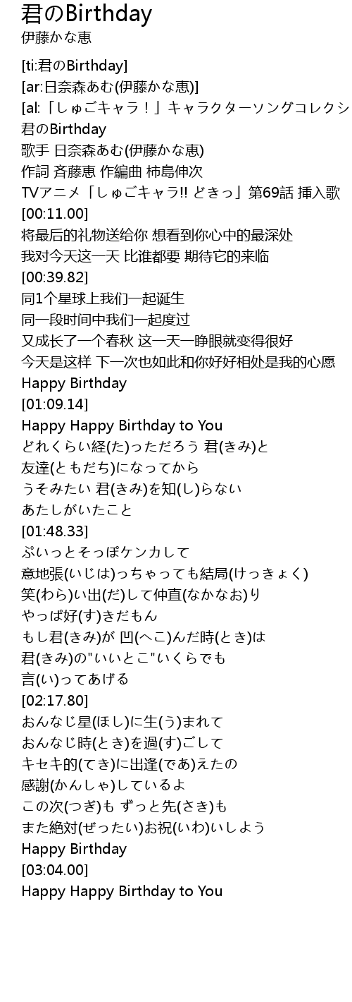 | [00:08.00] | TVアニメ「しゅごキャラ!! どきっ」第69話 挿入歌 |