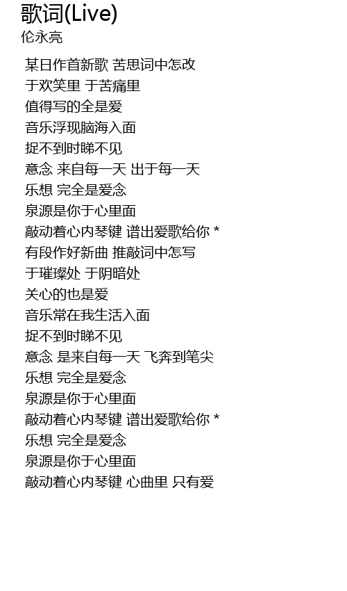| [03:33.65] | 敲动着心内琴键 心曲里 只有爱 |