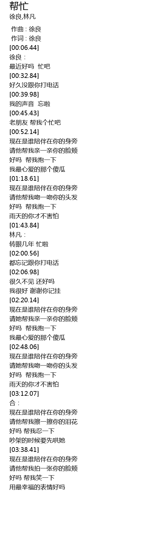 | [03:01.77] | hao ma bang wo bao yi xia |
