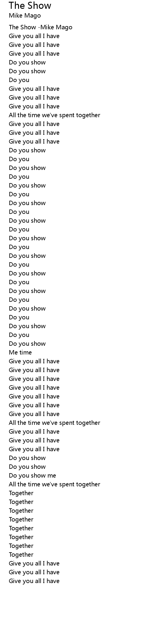 The Show -Mike Mago |