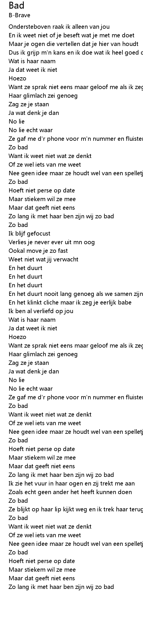 Zo lang ik met haar ben zijn wij zo bad |