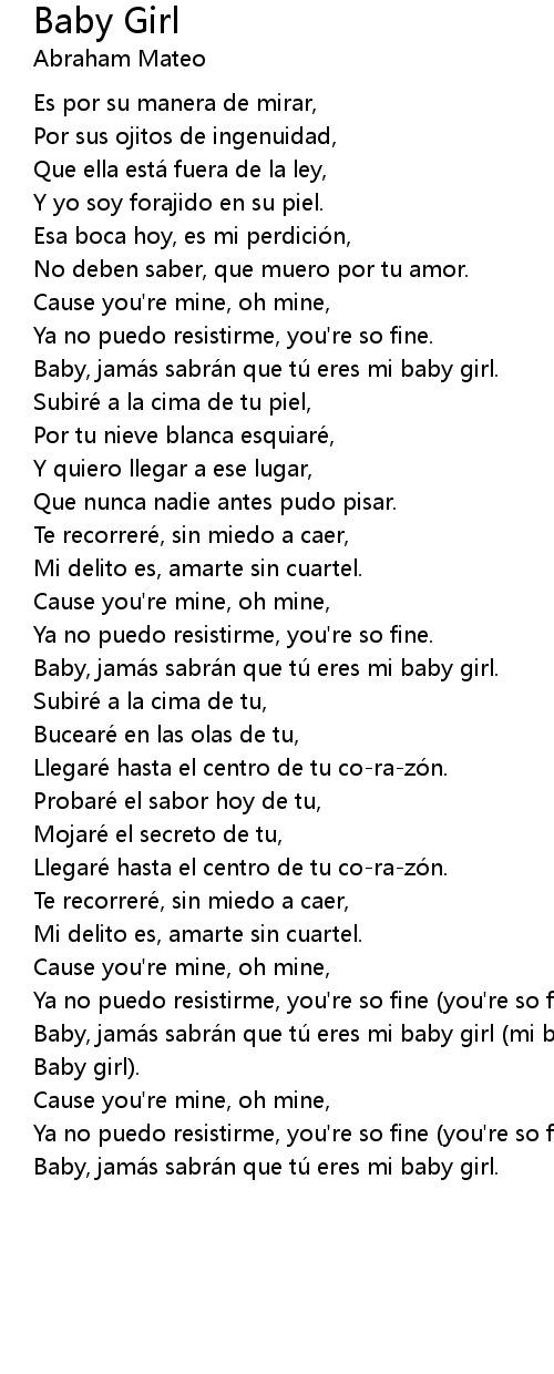 | Baby, jamá s sabrá n que tú eres mi baby girl mi baby girl, tu eres mi | |