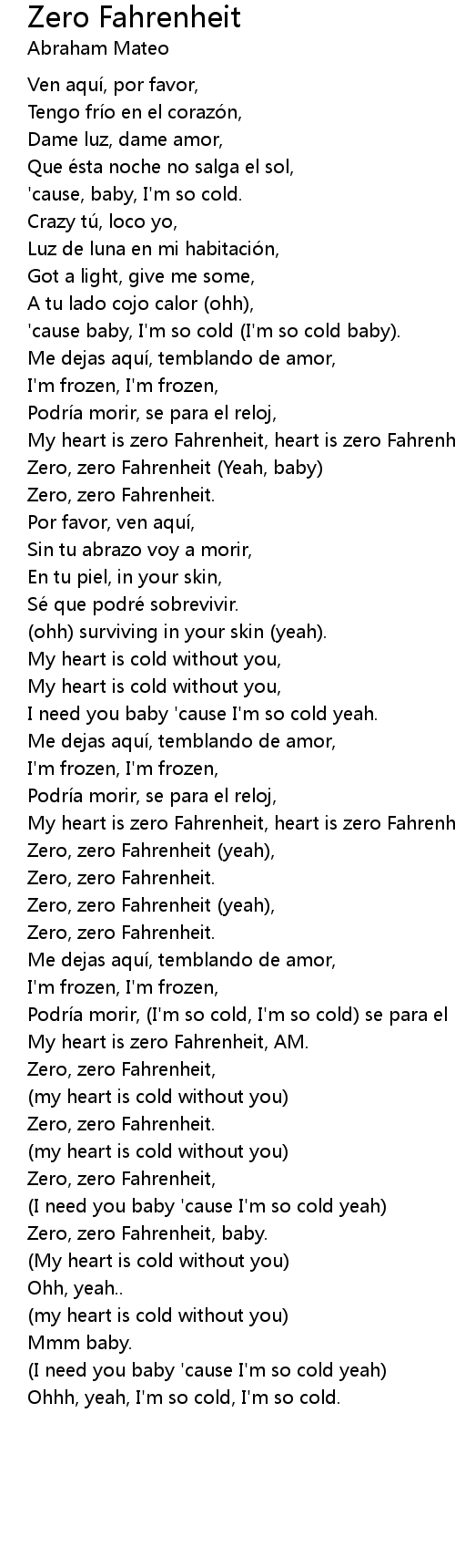 | My heart is zero Fahrenheit, heart is zero Fahrenheit. | |