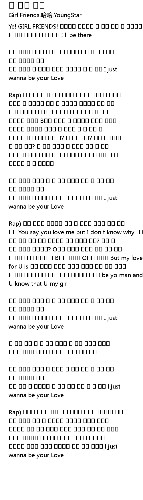 Rap) 사랑의 시작은 너로 인해 빛나네 서로를 바라보는 식지 않은 눈빛에 다툰 후 어색했던 다정했던 포옹에 시간이 흘러가도 너를 위해 노래해 사랑의 시작은 너로 인해 빛나네 서로를 바라보는 식지 않은 눈빛에 다툰 후 어색했던 다정했던 포옹에 시간이 흘러가도 너를 위해 노래해 I just wanna be your Love |