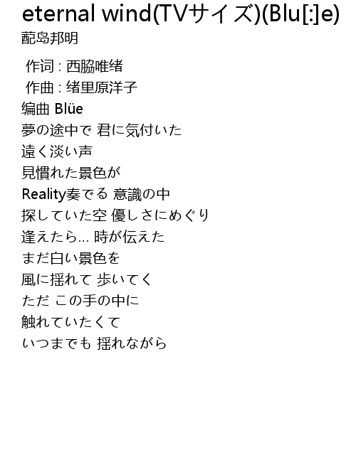 | 歌曲 | eternal wind(TVサイズ)(Blu[:]e) |