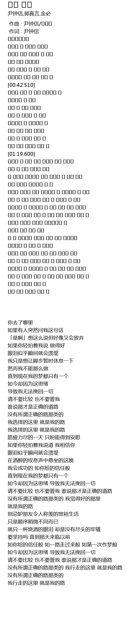 | [00:01.00] | 作词 : 尹钟信 |