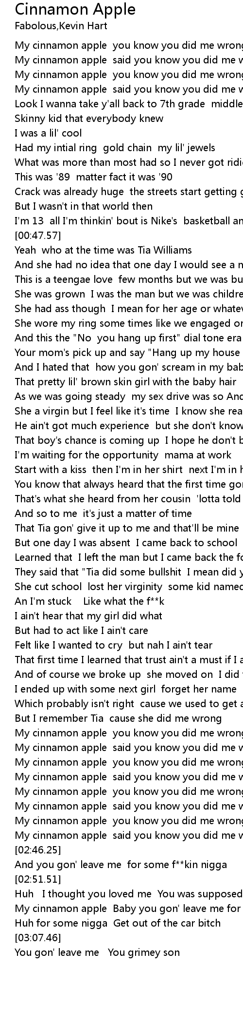 Huh I thought you loved me You was supposed to be my cinnamon apple |