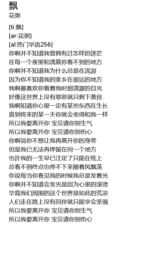 | [00:24.32] | 你啊并不知道我为什么总是在流浪 |