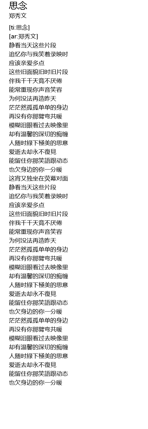 | [00:46.699] | 这些旧面貌旧时旧片段 |
