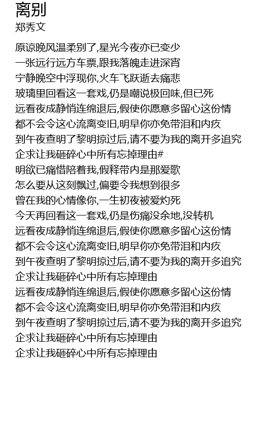 | [00:16.61] | yuán liàng wǎn fēng wēn róu bié le, xīng guāng jīn yè yì yǐ biàn shǎo |