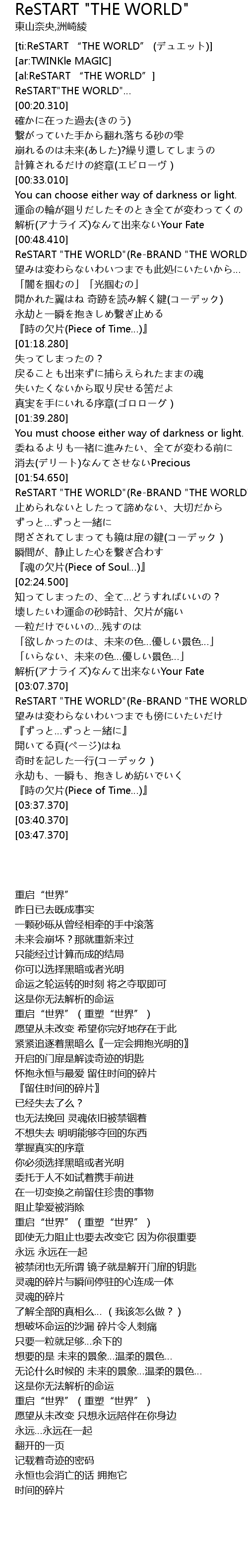 | [ti:ReSTART “THE WORLD” (デュエット)] | |