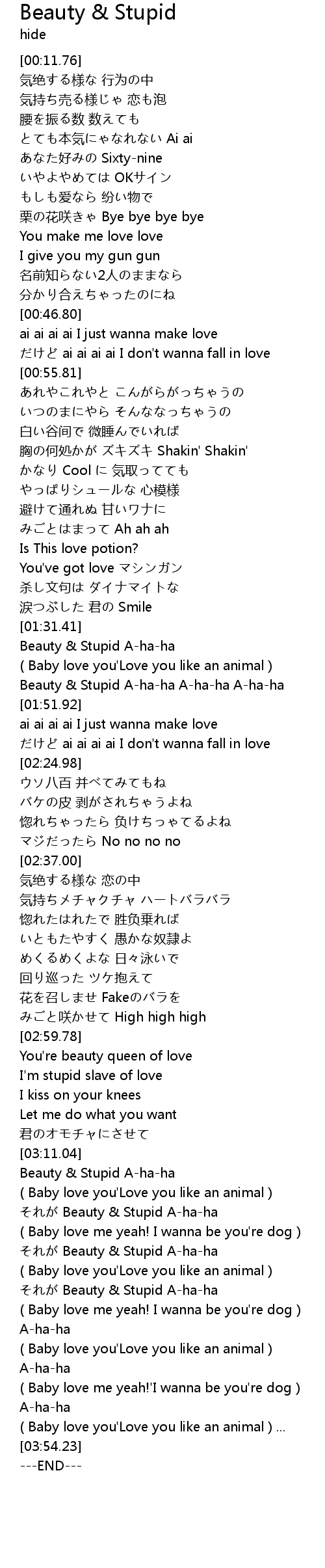 | [01:38.10] | Beauty Stupid Ahaha Ahaha Ahaha |