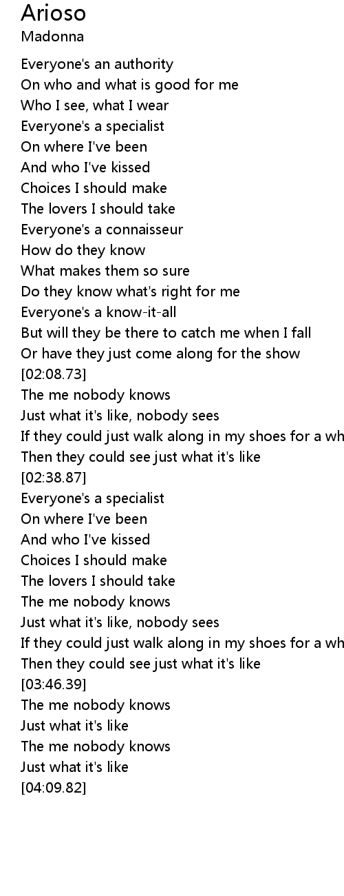 | [02:25.99] | If they could just walk along in my shoes for a while |