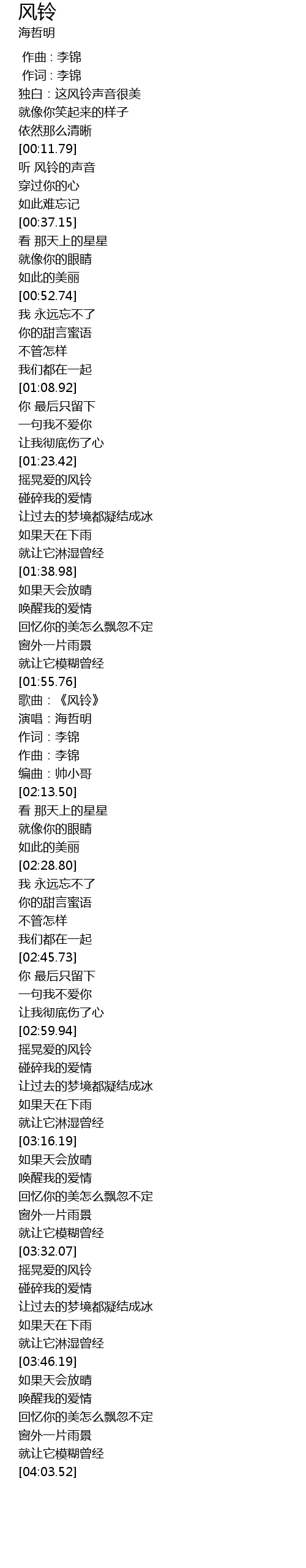 | [03:32.68] | 摇晃爱的风铃 |