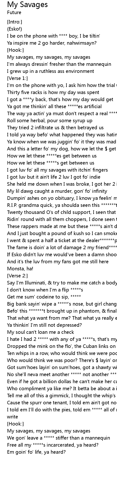 | I got luv fo' all my savages with itchin' fingers | |