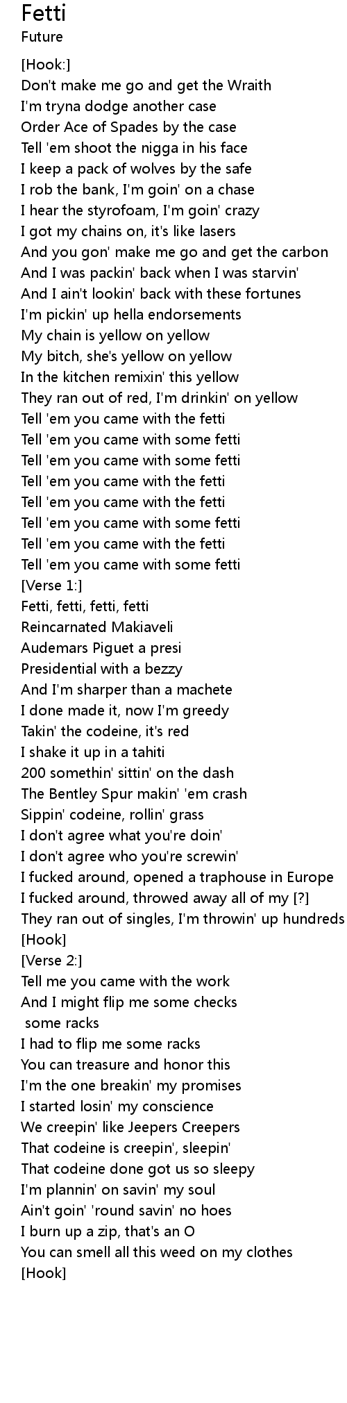 | Tell 'em you came with some fetti | |