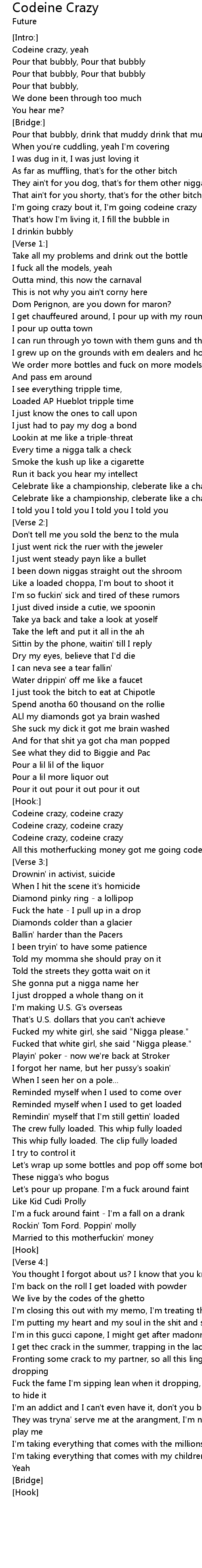| Codeine crazy, yeah | |