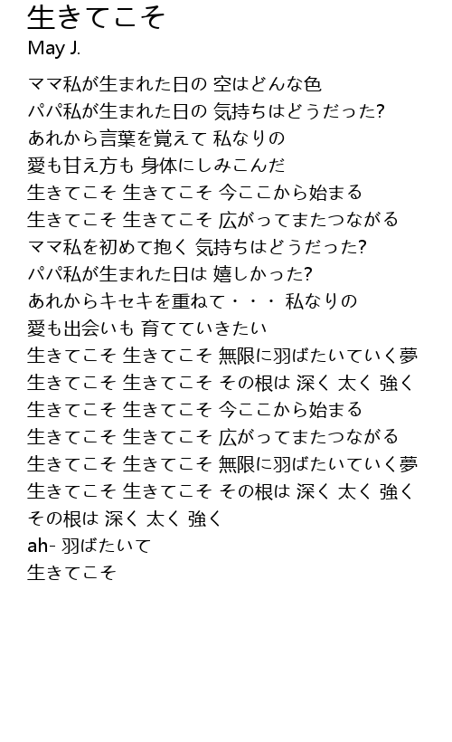 | 生きてこそ 生きてこそ 無限に羽ばたいていく夢 | |