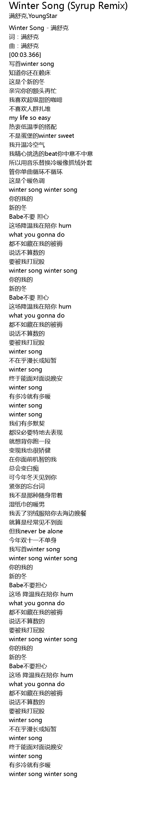 | [00:00.307] | Winter Song - 满舒克 |