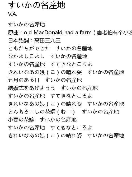 | [00:00.05] | 原曲:old MacDonald had a farm(唐老伯有个小农场) |
