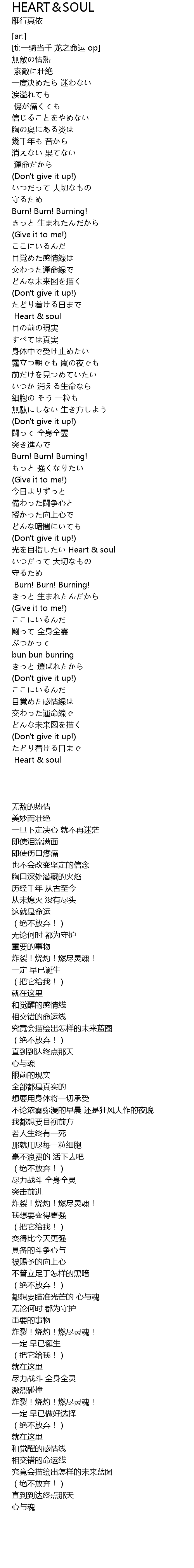 | [01:51.10] | 炸裂!烧灼!燃尽灵魂! |