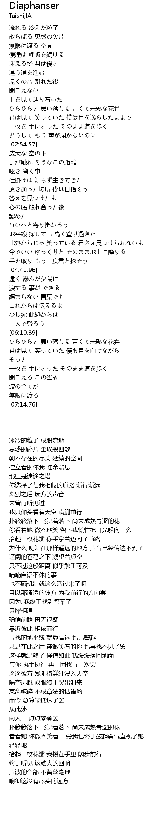| [06:36.91] | ひらひらと 舞い落ちる 青くて未熟な花弁 |