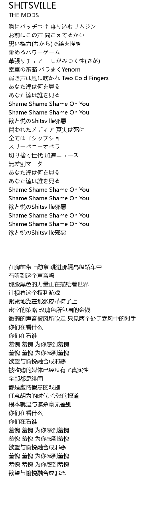 | 歌曲 | SHITSVILLE |