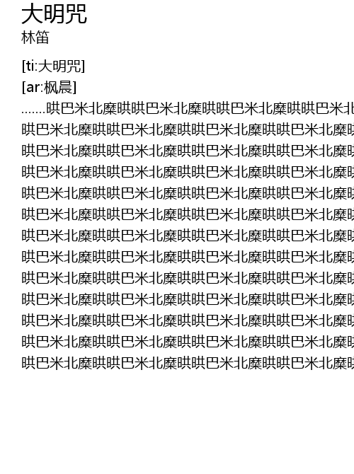 | [03:52.324] | 晎巴米北糜晎晎巴米北糜晎晎巴米北糜晎晎巴米北糜晎晎巴米北糜晎晎巴米北糜晎 |