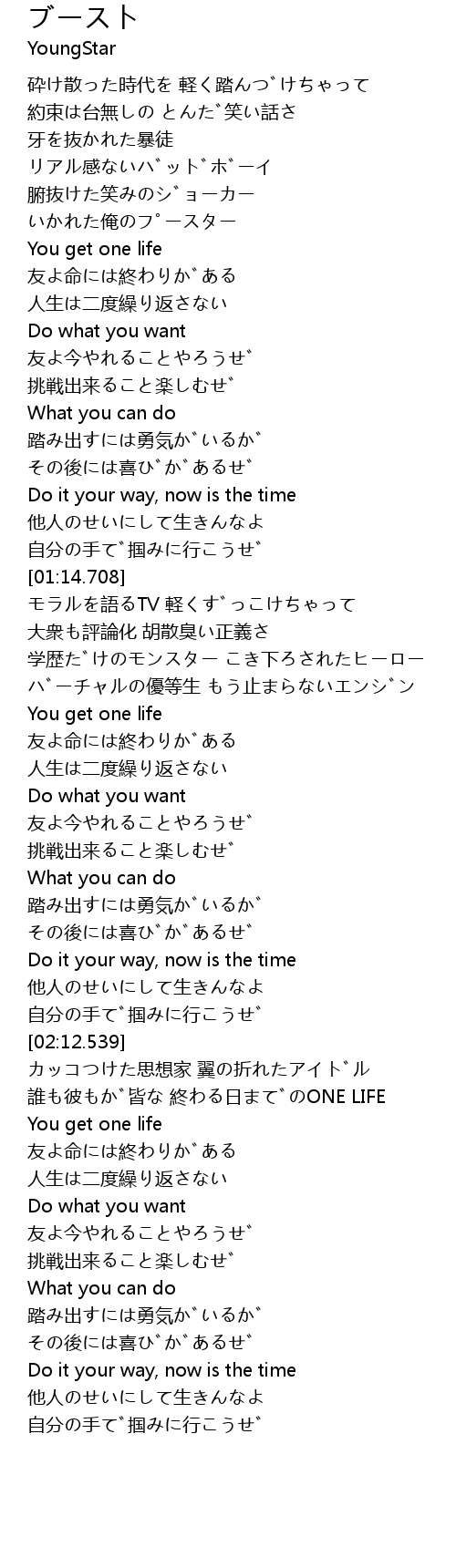| [00:46.505] | 腑抜けた笑みのジョーカー いかれた俺のプースター |
