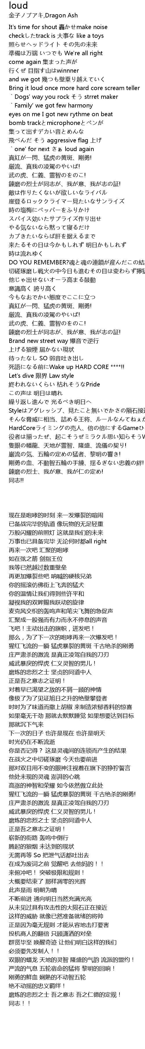 | [00:38.120] | 再更加爆裂些吧 呐喊的硬核兄弟 |