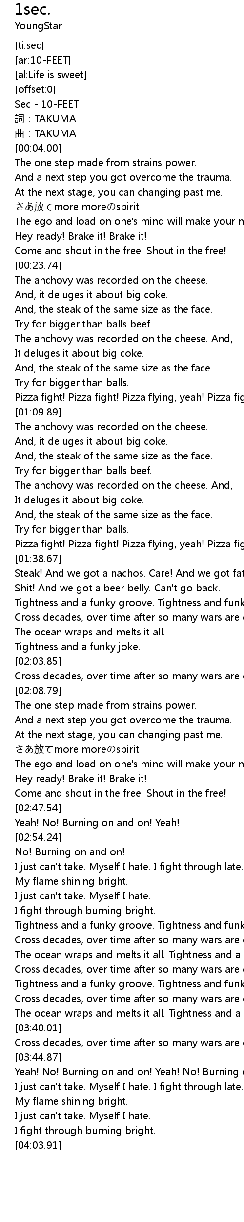 | [00:00.92] | Sec 10FEET |