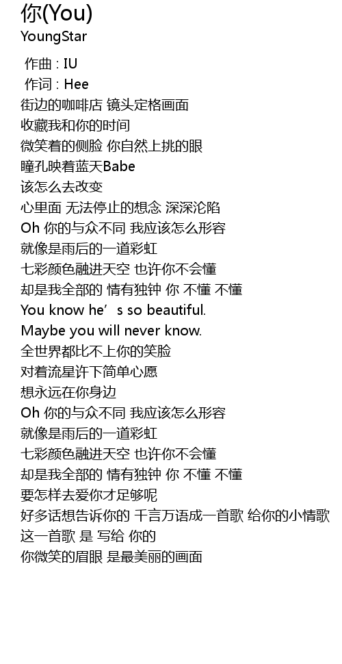| 歌曲 | 你(You) |
