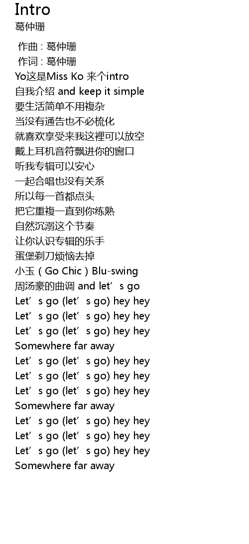 | [00:18.640] | Yo zhè shì Miss Ko lái gè intro |