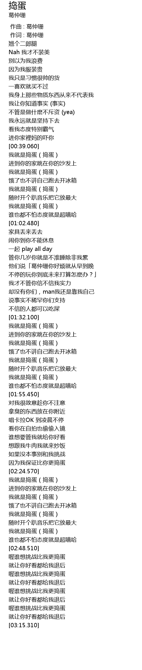 | [00:40.690] | 我就是捣蛋(捣蛋) |