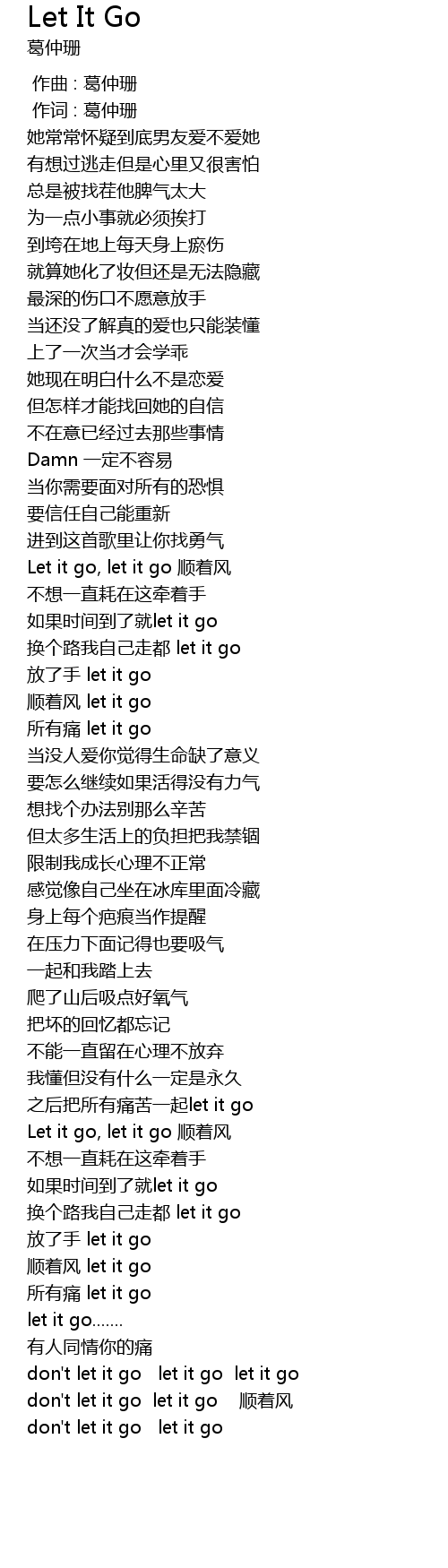 | [03:00.620] | don't let it go let it go 顺着风 |