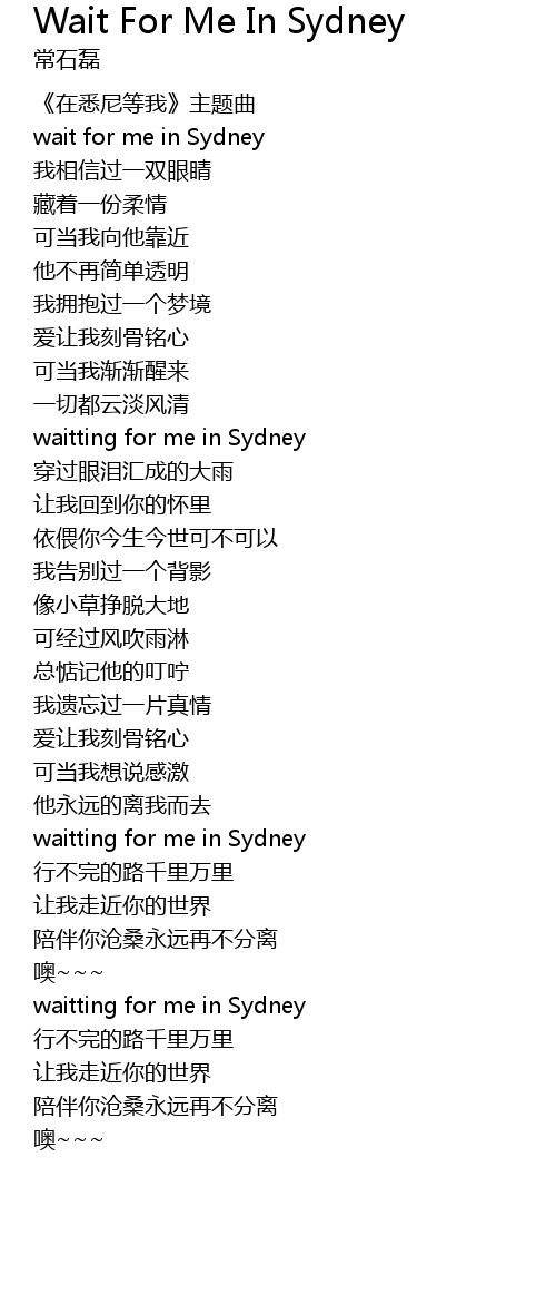 | [00:04.56] | wait for me in Sydney |
