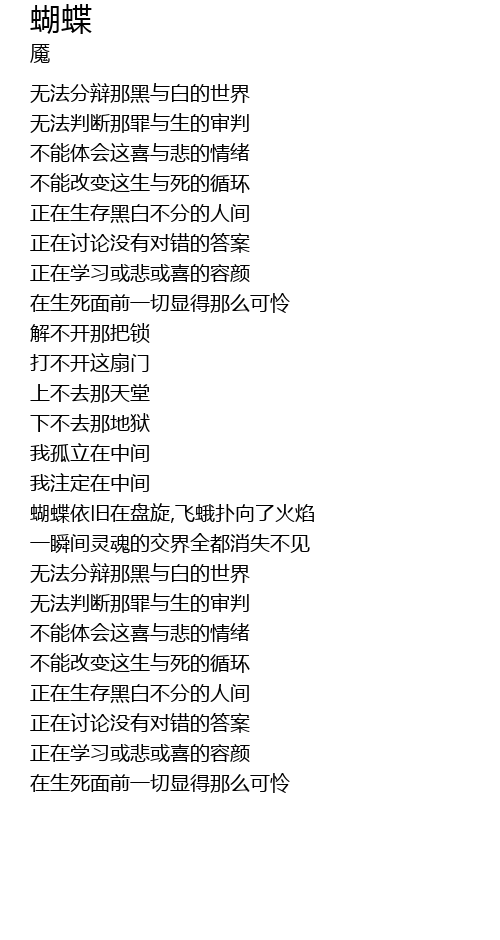 | [02:47.143] | 蝴蝶依旧在盘旋,飞蛾扑向了火焰 |