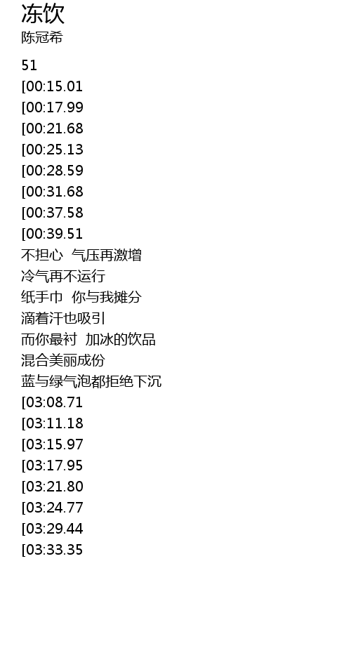 | [00:57.49] | 而你最衬 加冰的饮品 |