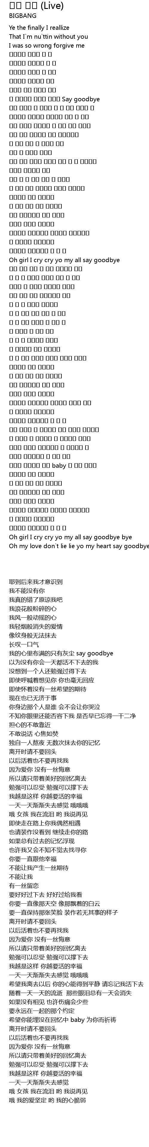 | [04:26.98] | Oh girl I cry cry yo my all say goodbye bye |