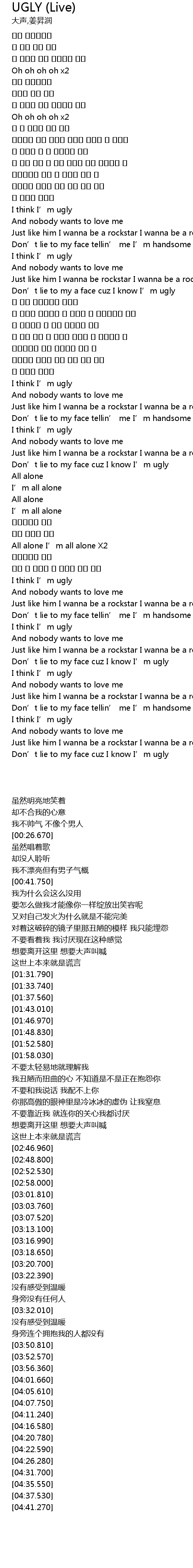 | [04:46.570] | Don' t lie to my face cuz I know I' m ugly |