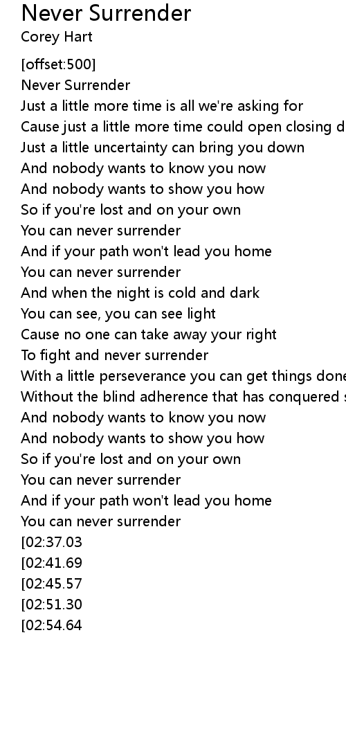 [03:48.23][02:54.64] To never surrender