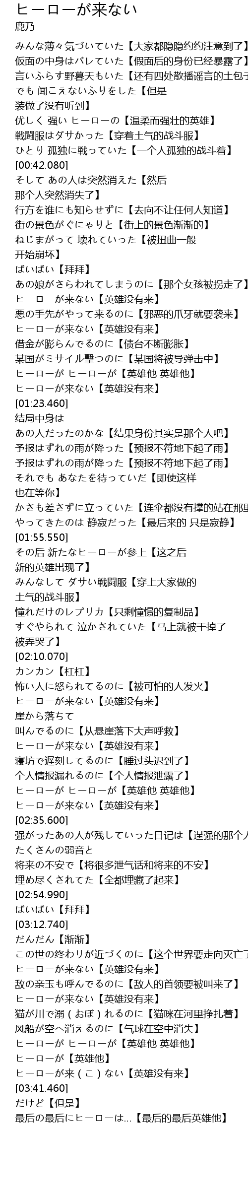 | [03:36.770] | ヒーローが来(こ)ない【英雄没有来】 |