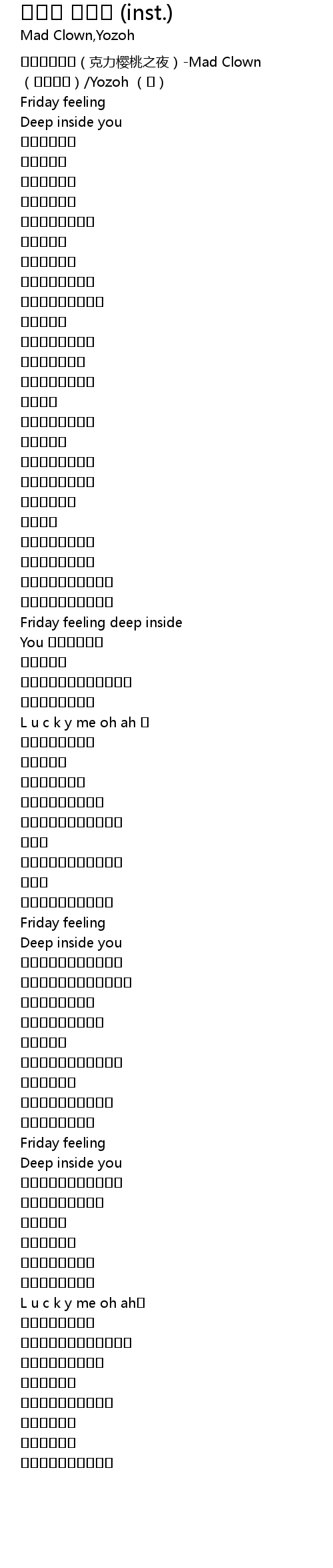 | [00:00.00] | 쇼콜라체리밤(克力樱桃之夜)-Mad Clown (드클라운)/Yozoh (조) |