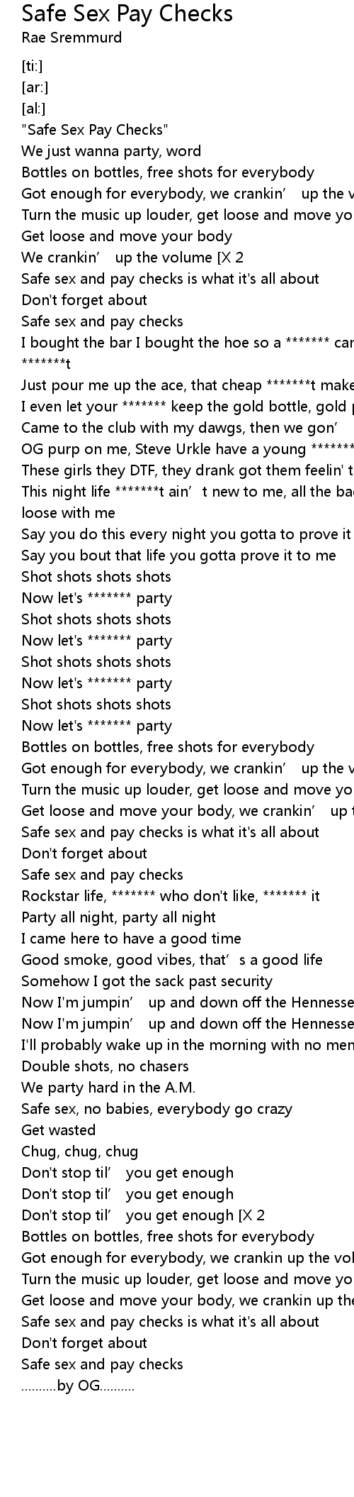 | [00:00.00] | " Safe Sex Pay Checks" |
