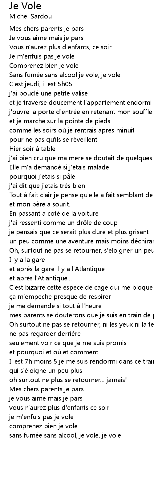 | Sans fume e sans alcool je vole, je vole | |