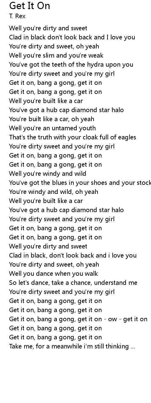 Get it on, bang a gong, get it on - ow - get it on |