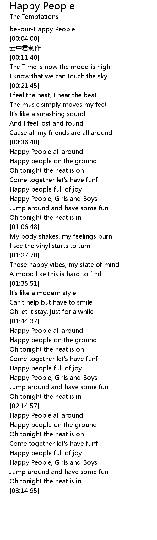 | [02:03.56] | Happy People, Girls and Boys |
