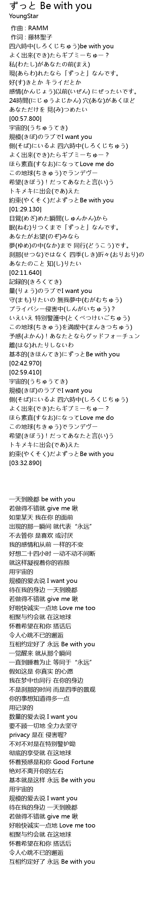 | [02:37.700] | 基本的(きほんてき)にずっとBe with you |