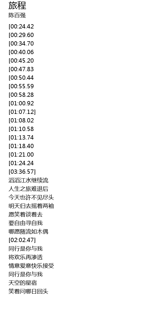 | [02:11.18][00:24.42] | 行色匆匆不会逗留 |
